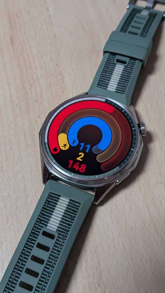 O relógio será lançado em dois tamanhos principais: 41 mm e 46 mm, sendo que a versão Pro ficará apenas nos 46 mm. Enviaram-nos a versão GT de 46 mm, com mostrador de 1,47 polegadas e ecrã AMOLED de alta resolução, aposta num visual mais robusto e desportivo, adequado para quem gosta de mostradores maiores. O design mantém a elegância clássica da linha GT, com construção em aço inoxidável e com várias opções de cores (cinza, verde e preto) e braceletes para adaptar o estilo ao gosto pessoal de cada utilizador.