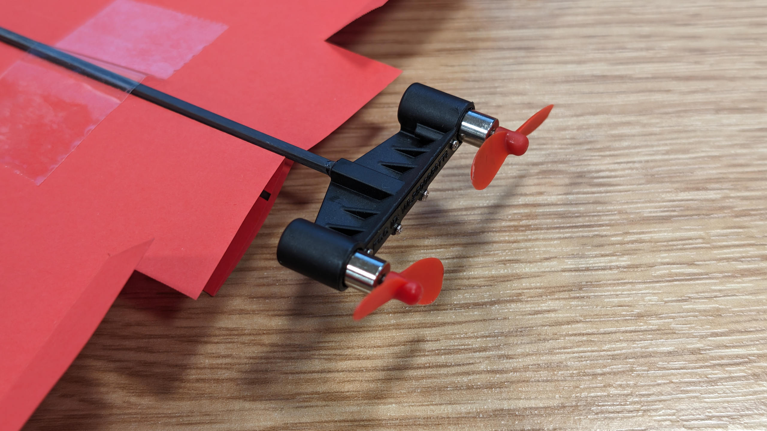Com tudo pronto estava, agora sim, na hora. Mas antes de libertar o avião decidi experimentar os motores em potência máxima com o PowerUp ainda na minha mão… e wow, ok que a marca diz que os micro motores atingem 40.000 rotações por minuto e os aviões são capazes de atingir uma velocidade máxima de 20km/h, mas nunca pensei ficar impressionado. A velocidade dos dois motores é impressionante, ao ponto em potência máxima o pequeno avião querer fugir da mão.